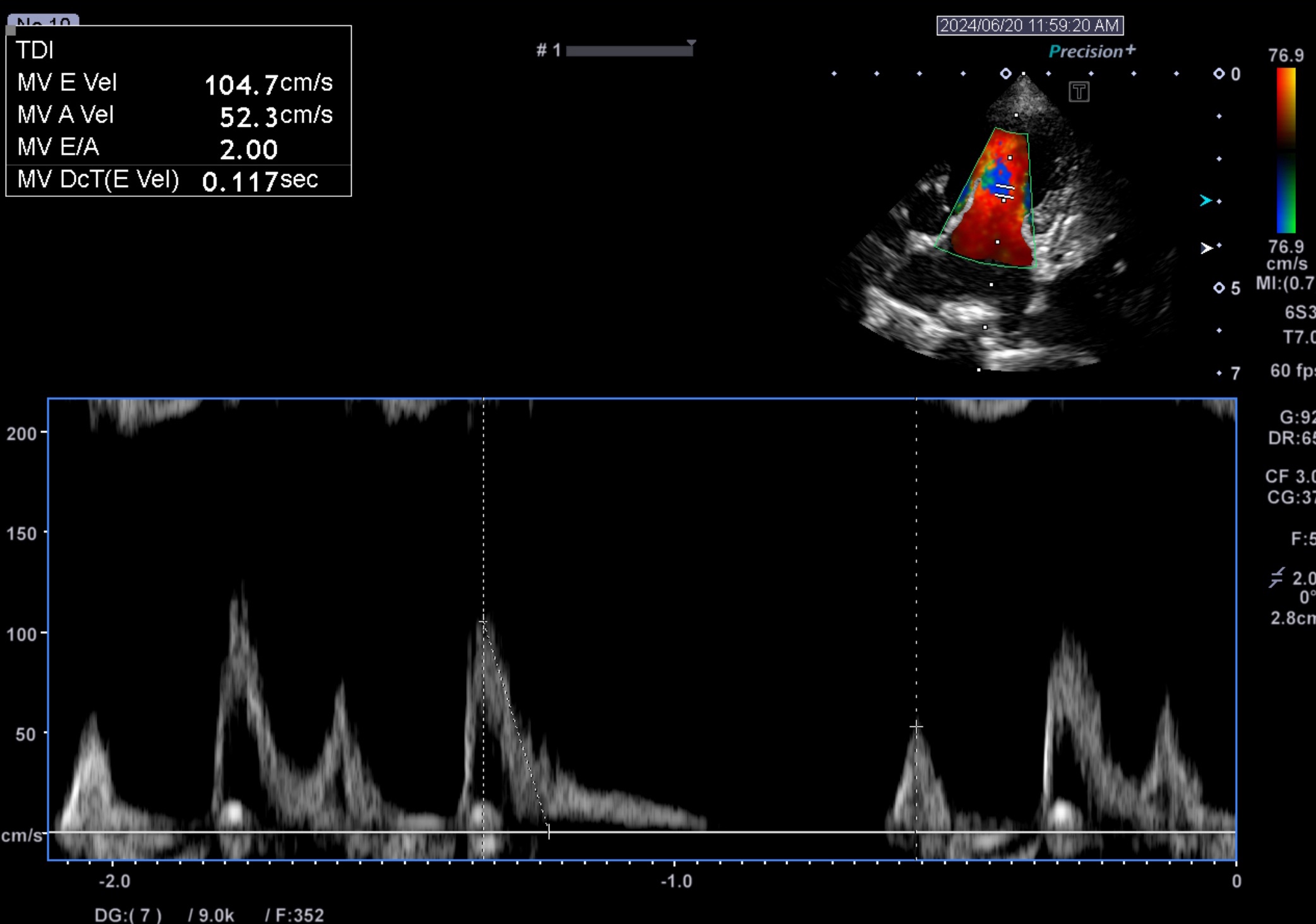 聴診にて左側心尖部にLevine Ⅳ/Ⅵの収縮期雑音が認められ、画像検査を実施しました。